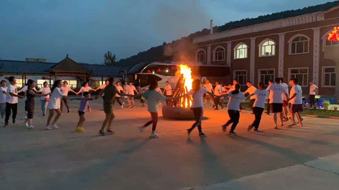 傍晚,開啟了一年一度最讓人激動(dòng)的篝火晚會(huì),晚餐十分豐盛,除準(zhǔn)備了10個(gè)菜以外,另配備了各色烤串,工作人員安排了仙人指路、蒙眼畫畫、皮球接力賽、擊鼓傳花等游戲項(xiàng)目,帶來了陣陣歡聲笑語。篝火正旺,瘋狂的的士高音樂響起,所有員工圍著篝火盡情的舞蹈,揮舞熒光棒,隨樂而動(dòng)。采購(gòu)部舞的開懷、持久、振奮人心,衛(wèi)冕富通舞王。兔子舞音樂開啟,一個(gè)個(gè)小兔子整齊劃一,口號(hào)響亮,帶動(dòng)了其他圍觀觀眾,傳遞著快樂氣氛。8點(diǎn)30分,五彩繽紛的煙火,將篝火晚會(huì)推向了高潮,所有人拿出手機(jī),記錄著這難忘時(shí)刻。
